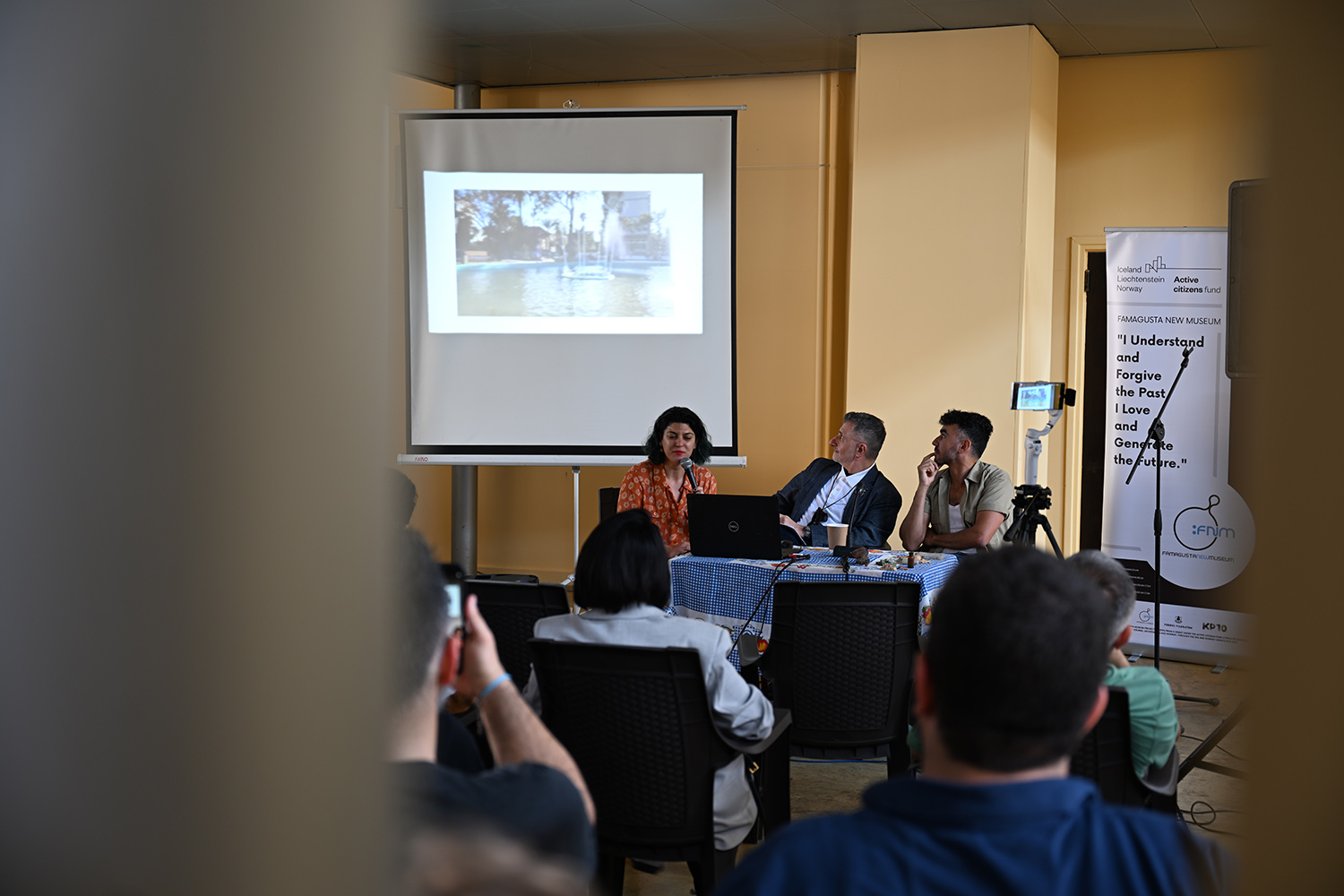 The Famagusta New Museum (FNM) Festival, funded by Active Citizens Fund Cyprus and an important step of the Pierides Foundation and KP10’s collaborative project, took place in Famagusta on Saturday, 13 April 2024, with a series of events that marked an important step towards cultural revival and social reconciliation in Cyprus. The festival started with the opening speech of the project team at Bandabuliya. In their opening speech, Yiannis Toumazis, Nurtane Karagil and Eralp Kortach thanked everyone who contributed to the festival and handed the stage over to Aysu Arsoy and Hacer Başarır who opened the programme. The duo kickstarted the programme by sharing the results of their research on ‘Delik Plajı’ (The Hole Beach), which is of great importance for Famagusta. The programme continued with Aysu Arsoy’s talk about the academic’s ‘Cabinet of Lost Memories’ project.
